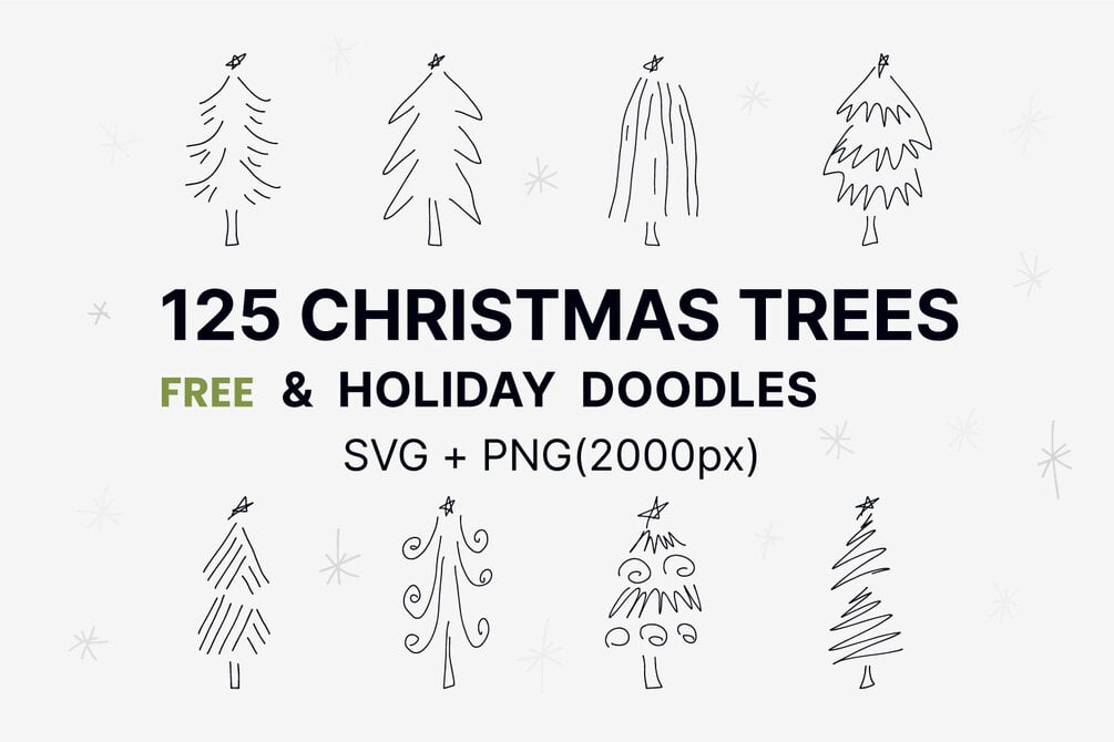 125 Christmas Trees + 40 Holiday Elements — Free Doodle Pack (SVG + PNG)